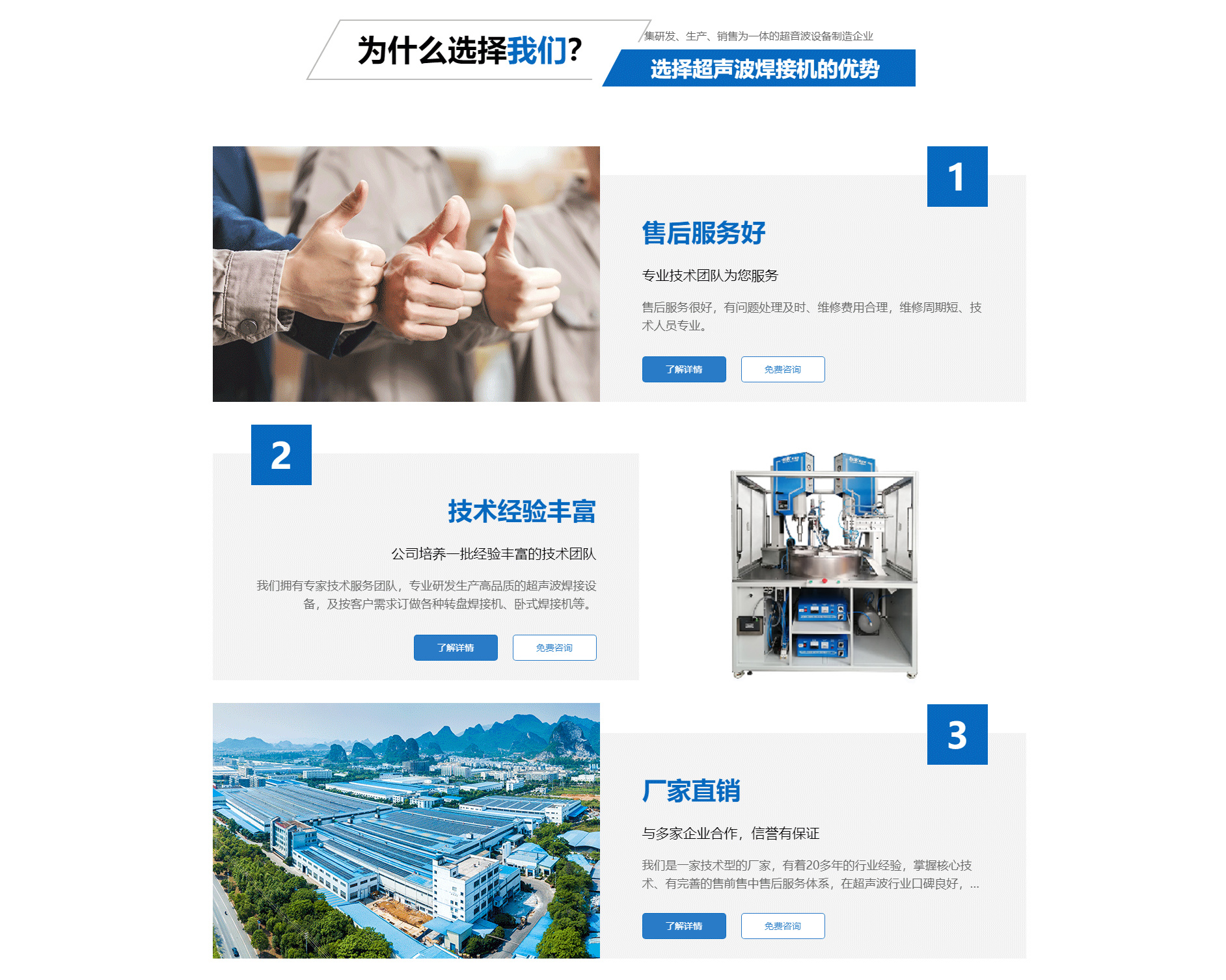 關(guān)于我們廈門勁榮機(jī)械設(shè)備有限公司是一家集研發(fā)、生產(chǎn)、銷售為一體的超音波設(shè)備制造企業(yè),主要產(chǎn)品包括多規(guī)格型號(hào)的超音波塑膠熔接機(jī)、熱板式塑料焊接機(jī)、多工位轉(zhuǎn)盤焊接機(jī)、振動(dòng)摩擦焊接機(jī)、旋轉(zhuǎn)式塑膠熔接機(jī)及配套的工裝夾具等。公司自2003年成立以來,一直致力于產(chǎn)品不斷完善中,并追求產(chǎn)品的精益求精,于2004年向國家商標(biāo)局注冊(cè)了“勁榮”牌商標(biāo),2009年榮獲廈門市商標(biāo)。 經(jīng)過多年的努力,公司已經(jīng)發(fā)展成為占地面積2000余平方米、擁有員工50余人的企業(yè)。公司一直將“品質(zhì)是企業(yè)發(fā)展的原動(dòng)力”作為經(jīng)營理念,嚴(yán)把質(zhì)量關(guān),建立了一整套有效的安全生產(chǎn)及管理模式,不僅贏得了同行的認(rèn)可,更取得了客戶的信賴,先后與九牧集團(tuán)、路達(dá)工業(yè)、建霖集團(tuán)、西伯電子、蒙發(fā)利實(shí)業(yè)、松霖科技、銥科集團(tuán)、科司特電子等公司建立了長(zhǎng)期的合作關(guān)系。 面對(duì)已經(jīng)取得的成績(jī),我們不驕不滿,因?yàn)樯钪獦I(yè)績(jī)只能代表過去,只有靠良好的產(chǎn)品質(zhì)量和完善的售后服務(wù)才能在客戶中口碑相傳,在...